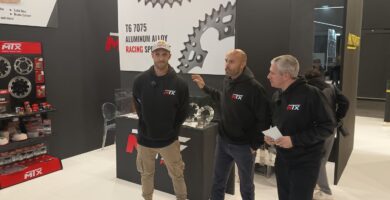 Foto: Presentación de la firma MTX Parts en EICMA 2025, junto a Pol Tarrés (R.Montero)