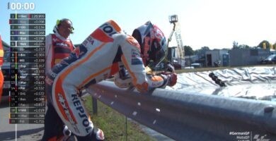 Warm Up MotoGP hoy en Alemania: Durísima caída de Marc Márquez