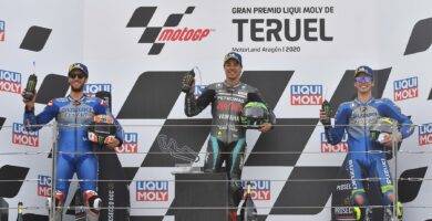 Las banderas del Gran Premio de Teruel: Morbidelli se corona y Márquez se estrella