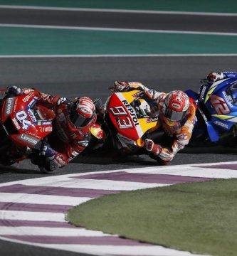 La apretada llegada a meta de Márquez y Dovizioso en el GP de Qatar 2019. Foto: Michelin