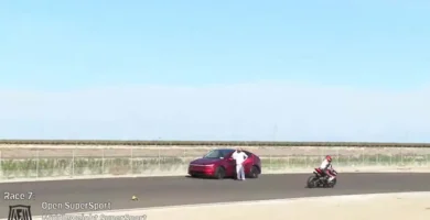 ¡Increíble! Un Tesla se cuela en plena carrera de motos causando el caos en pista