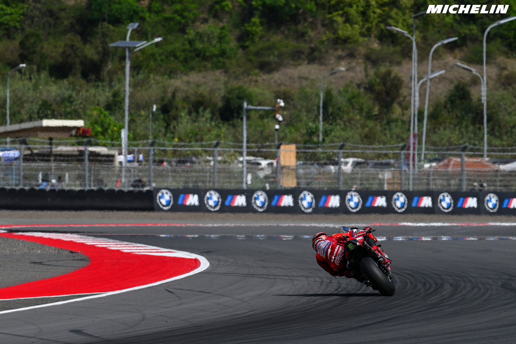 Uno hasta podría pensar, aunque nadie se atreva a decirlo en voz alta, que, en el momento en que Pecco Bagnaia rueda completamente último, detrás de Chantra, deja que la moto se le escape hacia la grava con más resignación que sorpresa. Fue, en apariencia, menos un error de pilotaje que una especie de rendición controlada, el lazo final a un fin de semana en el que legítimamente algunos aficionados se preguntan si Pecco realmente quiso competir, una pregunta dura y que no debe ser tomada a la ligera pero que ante tal actuación ambos días de carreras unido a sus declaraciones, es normal que esta acabe surgiendo.