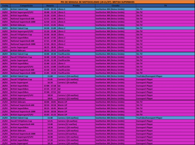Este fin de semana se presenta mucho más tranquilo que de costumbre. Únicamente el British Superbike significará un punto de atención en cuanto a la competición de dos ruedas, pues el campeonato afrontará desde el viernes su sexta ronda de la temporada, en el circuito de Snetterton, en su configuración ‘300’.