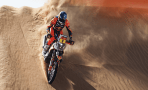 Luciano Benavides ha sido el encargado de abrir la etapa 9 del Dakar este martes; que une Riyadh con Haradh en un recorrido de 357 kilómetros. En la clasificación general, Daniel Sanders partía como líder, a 11’03» de Tosha Schareina y a 21’31» de Adrien Van Beveren. Benavides, por su parte, ascendía hasta la cuarta posición tras su victoria en la etapa 8.