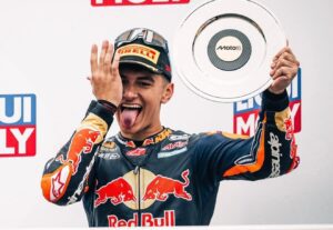 En relación con la evolución de David Alonso hasta su llegada a Moto3, Terol confirma que nunca han perdido su confianza en él, desde que fue reclutado para las filas del equipo aspar a petición suya, incluso cuando no ganó el FIM Junior después de haber arrasado por otras categorías:»Yo me quité un peso cuando ganó el año pasado en Silverstone, con su primera victoria, porque hubo que dejarle en 2022 en el Junior sin hacer la rookies, garantizándole sitio en el Mundial para 2023, y ese 2022 no salieron los resultados como se esperaba y aun así se le dio la oportunidad«