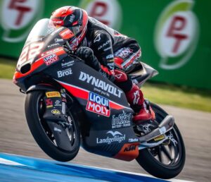 Ryusei Yamanaka protagonizaba la primera caída del domingo, sin grandes consecuencias para el piloto, que podía salir de la grava por su propio pie. También problemas para Buchanan, que se iba al suelo poco después. Mientras, en pista, se mantenían las posiciones delanteras, con el grupo tratando de abrir distancia con respecto a los perseguidores. Adrián Fernández era el primero en atacar, situándose tercero; al tiempo que Guido Pini se iba al suelo.