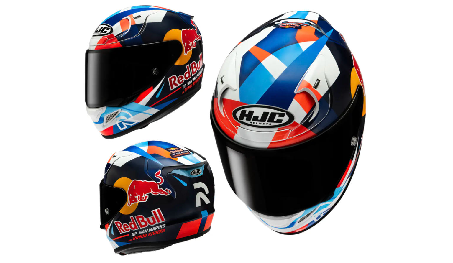 Esta nueva variante destaca por su estética vibrante y enérgica, fruto de la colaboración directa con Red Bull, y aprovecha la avanzada plataforma técnica del RPHA 12 para ofrecer un equilibrio perfecto entre seguridad y aerodinámica. El diseño gráfico rinde un homenaje directo al trazado de Misano, utilizando una paleta cromática que evoca la velocidad y el dinamismo de las carreras de élite, integrando el icónico logotipo del toro de forma orgánica en sus líneas fluidas.