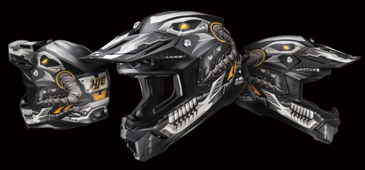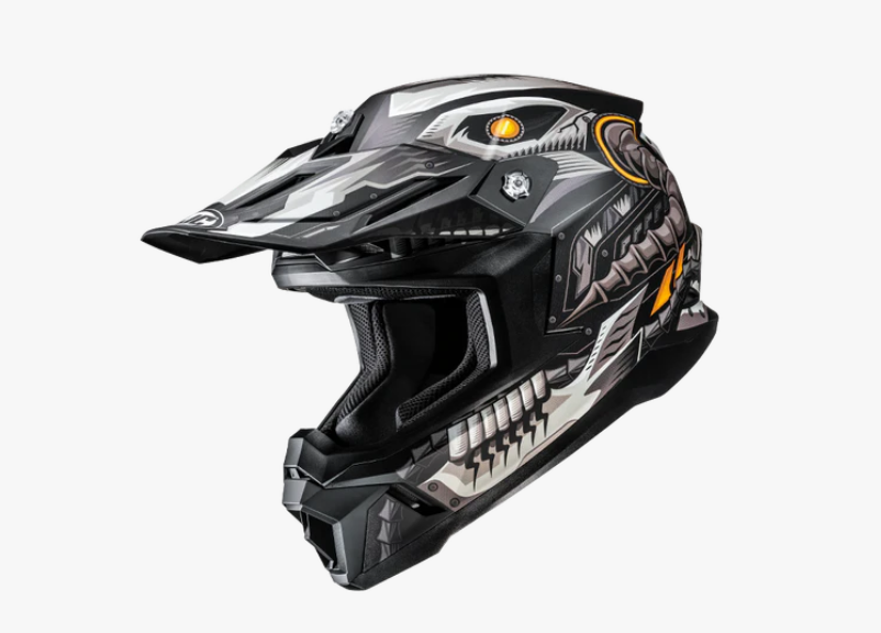 Inspirado en la emoción y la intensidad de la conducción offroad, el HJC C50 Mecha Beast presenta una gráfica atrevida de «Monstruo Mecha» que fusiona formas orgánicas con estructuras mecánicas complejas y una estética futurista de alta tecnología