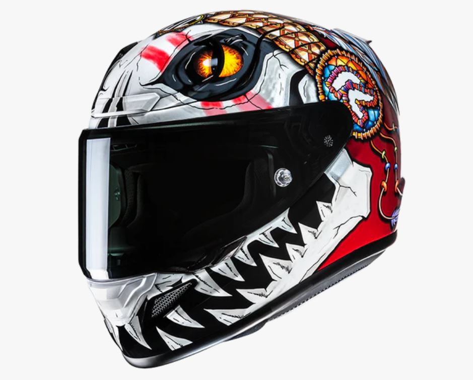 El nuevo HJC RPHA 12 KEPINA presenta un llamativo diseño de calavera con nítidos detalles en forma de dientes en la parte frontal y ojos amarillos intensos en la parte superior, creando un impacto visual inconfundible. Con una fluidez fluida de adelante hacia atrás, los intrincados patrones demuestran una artesanía excepcional y una atención al detalle. Para realzar su carácter único, el logotipo premium RPHA de HJC está artísticamente colocado dentro de un atrapasueños, representando no solo la decoración, sino también la identidad y el simbolismo de la marca.