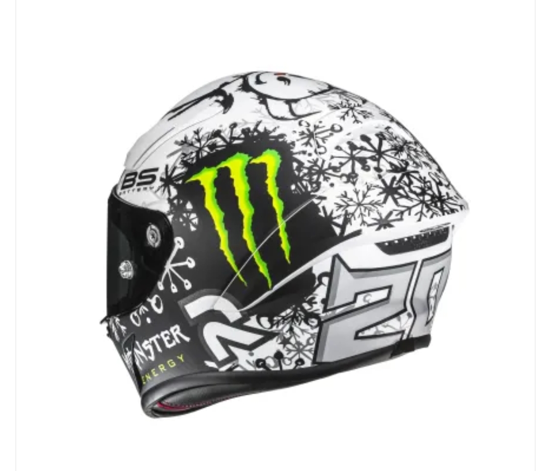 Desde el primer vistazo, la versión Snow Diablo destaca. La decoración es una amalgama de un diseño helado con toques de garras verdes de Monster Energy, una estética agresiva que complementa su propósito de competición pura. Pero más allá de la cosmética, el núcleo del casco es su calota exterior de fibra de carbono. Este material no solo es increíblemente ligero, con un peso aproximado de 1420 gramos, sino que también ofrece una resistencia superior a los impactos, mejorando el rendimiento de seguridad general. La ligereza es una ventaja crucial, minimizando la fatiga del cuello durante las tandas largas en circuito.