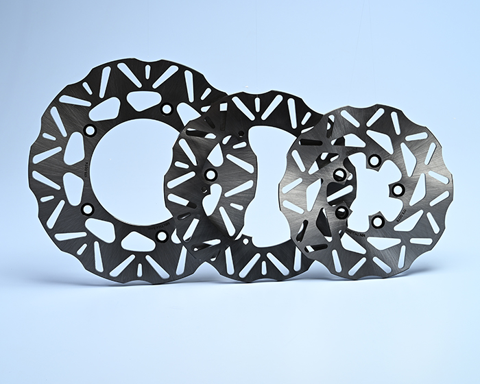 Fabricados en acero AISI 420, los discos incorporan un perfil exterior exclusivo, desarrollado mediante corte láser, tratamiento térmico y mecanizado de alta precisión con tecnología CNC. Este proceso garantiza una estructura robusta y exacta, capaz de mantener un comportamiento constante incluso en condiciones de uso intensivo. En marcha, el conjunto se traduce en una frenada más reactiva, con mayor capacidad de modulación y un control superior del vehículo. La arquitectura del disco optimiza la disipación térmica, reduce los efectos de la dilatación a altas temperaturas y asegura una elevada resistencia frente a esfuerzos extremos. Todo ello contribuye también a mejorar la eficiencia y durabilidad de las pastillas de freno.