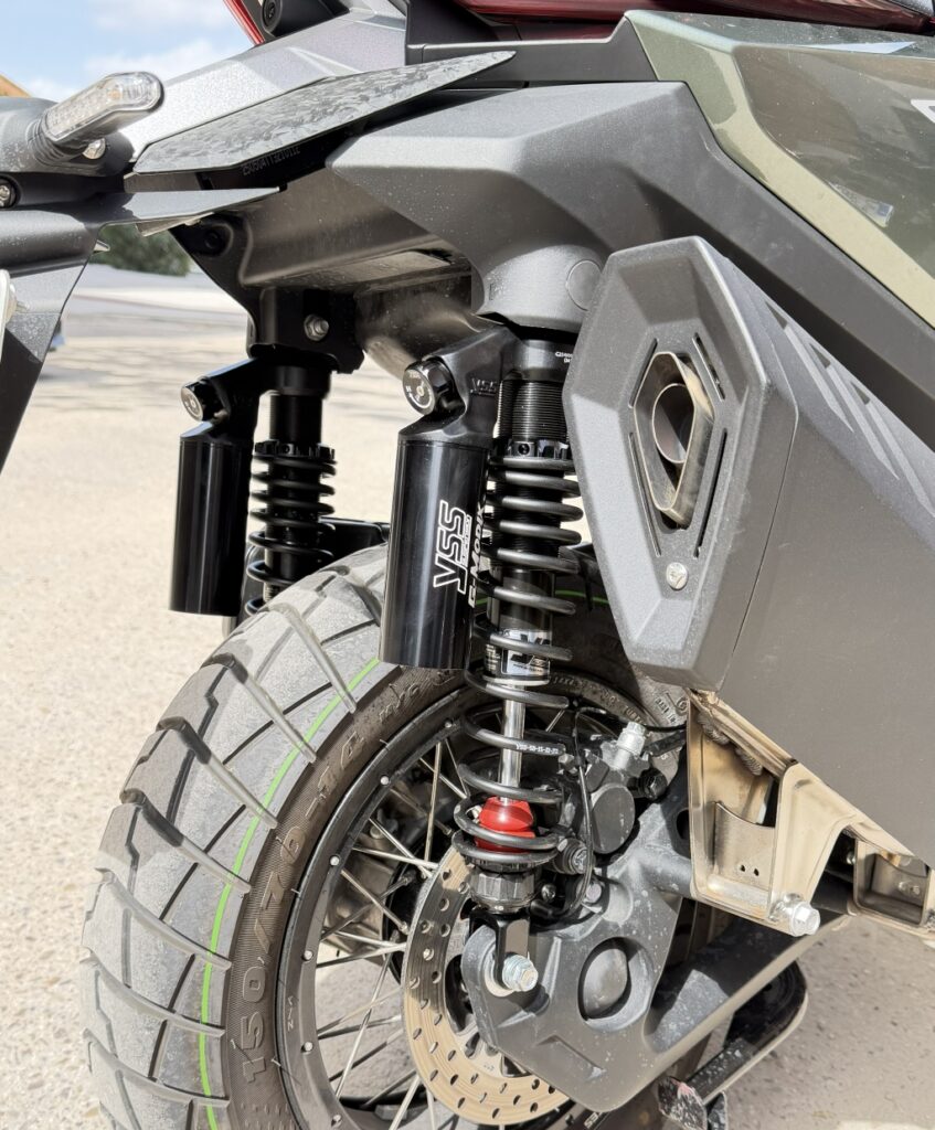 No todo son ventajas, y aquí viene el matiz importante. La 368G de serie ya tiraba a firme en ciertos escenarios urbanos, y con la YSS eso se acentúa. Los baches más secos se notan más, especialmente en ciudad o asfalto roto. Ahora bien, no es una incomodidad molesta, sino más bien un cambio de carácter: pierdes algo de suavidad, pero ganas mucha precisión.