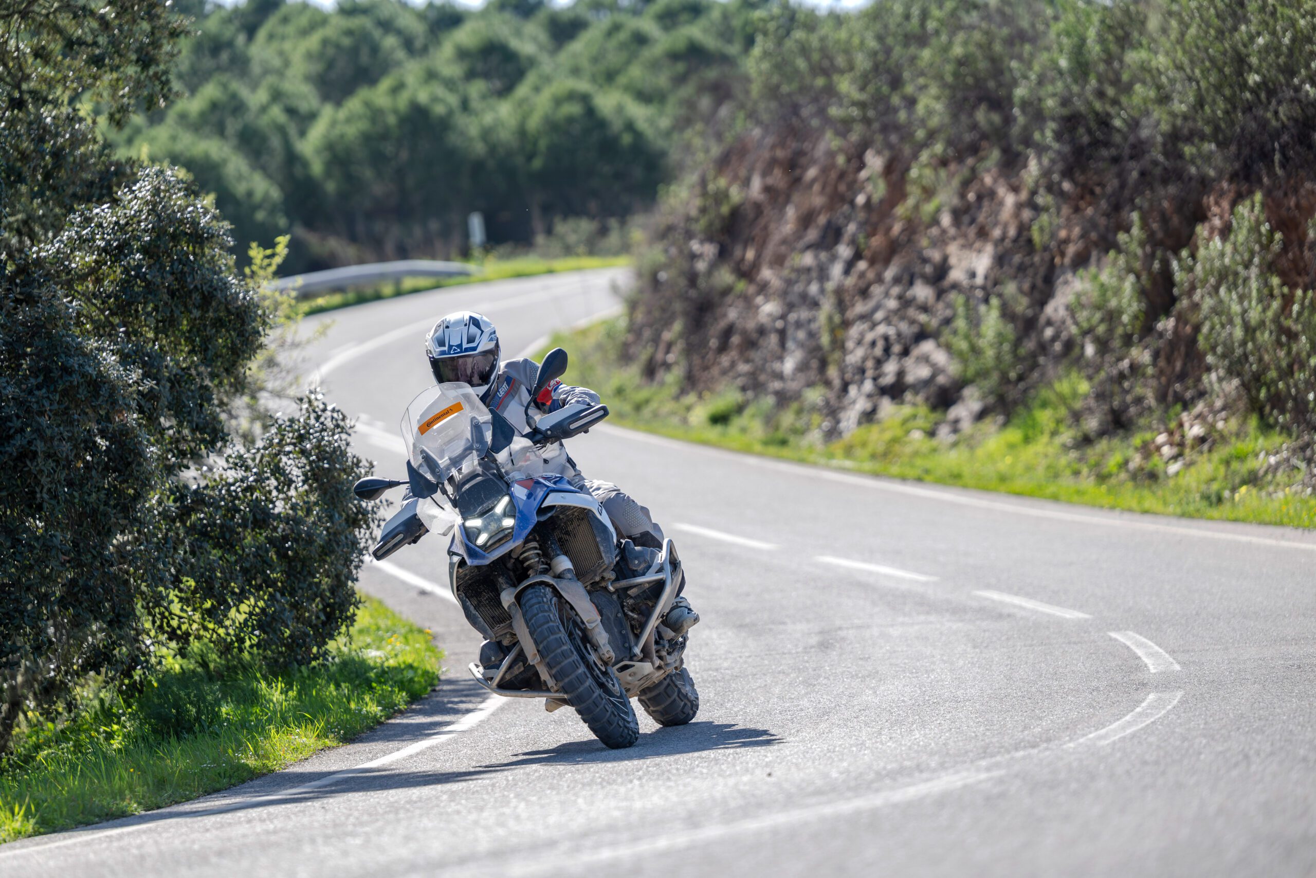 La otra cara de la moneda, por supuesto, es el rendimiento en asfalto y la longevidad, y mi impresión positiva se mantiene. Si bien aún no me he topado con una lluvia torrencial, sí he pasado por carreteras de montaña resbaladizas y mojadas, y con un poco de sentido común y un frenado suave, no noto en absoluto los tacos de la TKC 80². En carreteras secas, me muevo con una conducción deportiva, llevando la banda de rodadura al límite, tanto delante como detrás, sin apenas esfuerzo. No son neumáticos deportivos, pero los he llevado más allá de lo que muchos estaréis dispuestos a soportar, y la frase que se repite en mi casco siempre es: « ¡Guau, estos neumáticos son buenos!».