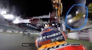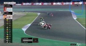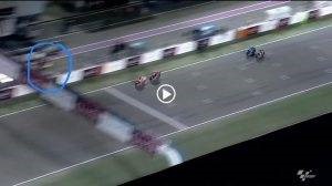 A mediados de la penúltima vuelta nos avisaban las pantallas de la realización de Dorna, Bradley Smith, piloto probador de Aprilia que hacía «wild card» ayer en Losail, se caía en la primera curva. Las banderas amarillas ondearon avisando a los pilotos, que entre otras cosas no se puede adelantar.