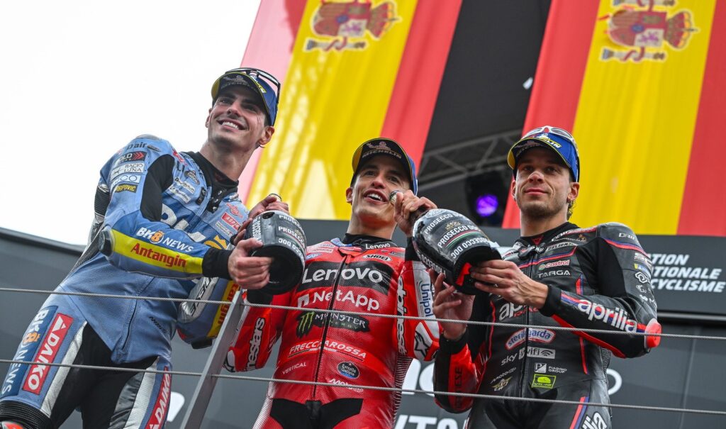 En cuanto a la tecnología de MotoGP, y si la diferencia la marca el piloto o la moto, Aldeguer lo tiene claro. «El que va encima de la moto es el que marca la diferencia. Nosotros lo decimos. Pero claro, siempre estará el que lleva lo mejor. Cada moto tiene su estilo, te tienes que adaptar. Por ejemplo, yo corro con Ducati, que se supone que es la mejor marca ahora mismo de la parrilla. Y las primeras carreras quedaba el 12, el 13, el 15, llevaba la misma moto que cuando gané la carrera. Entonces, al final, creo que es adaptarse a lo que tienes, sacar el máximo partido y ya está», finalizaba.