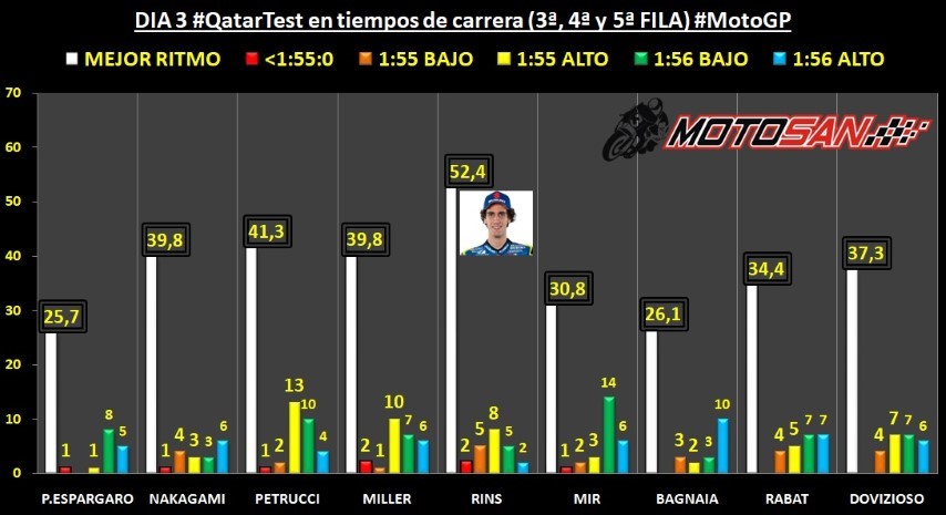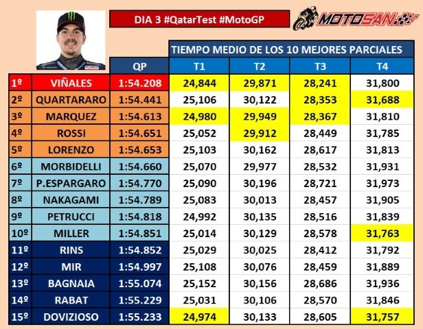 Se acabó la pretemporada y empieza lo bueno. La próxima vez que veamos motos en pista será en la FP1 del Gran Premio de Qatar. Hoy como en días anteriores, os traemos información de primera mano más allá de la vuelta rápida, el análisis de ritmos.