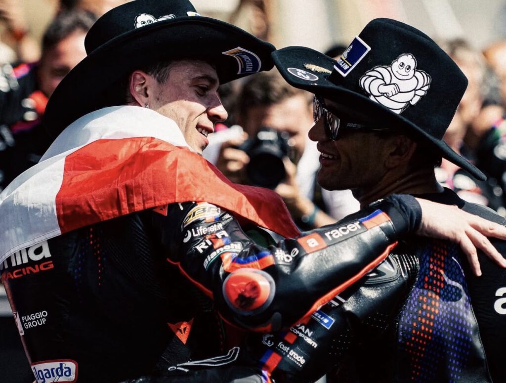 Tras el doblete en Austin, Aprilia enfrenta la tensión interna entre sus dos pilotos con solo cuatro puntos de diferencia en la clasificación.