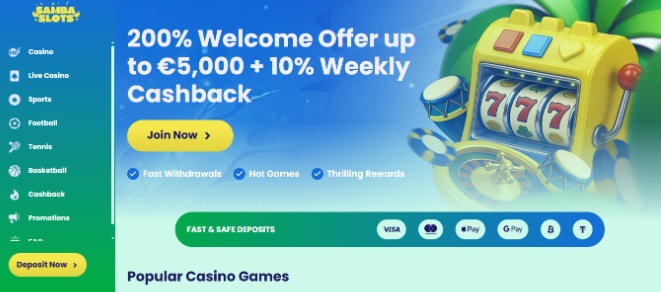 Samba Slots es de esos casinos que pagan al instante y te ganan por su estilo y su agilidad. Todo va al ritmo justo: registro rápido, interfaz fluida y retiros inmediatos. La web está muy bien optimizada, funciona igual de bien en móvil que en ordenador y da una sensación constante de fluidez.