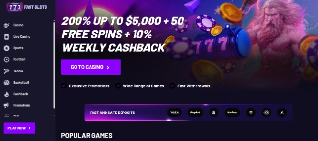 - Fast Slots – 200 % hasta $5.000 más 200 giros gratis