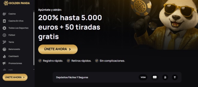 - Golden Panda – 200 % hasta $5.000 más 50 giros gratis