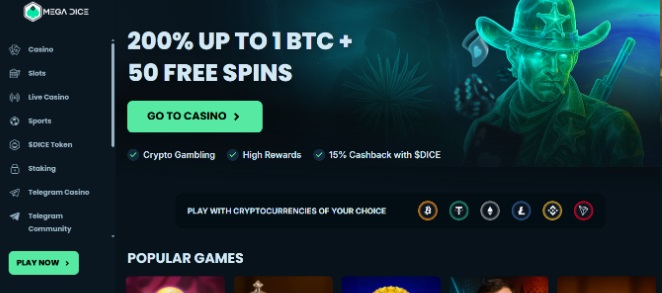 - Mega Dice – 200 % hasta 1 BTC junto a 50 giros gratis