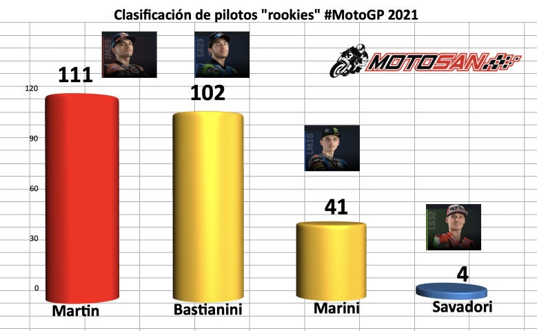 Jorge Martín ya tiene bajo el brazo uno de los títulos que le faltaban y, además, en su última oportunidad de conseguirlo. El piloto del Pramac, con un nuevo podio en Valencia siendo segundo, le quita la plaza del rookie del año a Enea Bastianini. El español no lo ha tenido fácil después de pasar una noche prácticamente sin dormir, por culpa de un malestar estomacal que no le ha puesto las cosas fáciles para este cierre de temporada.