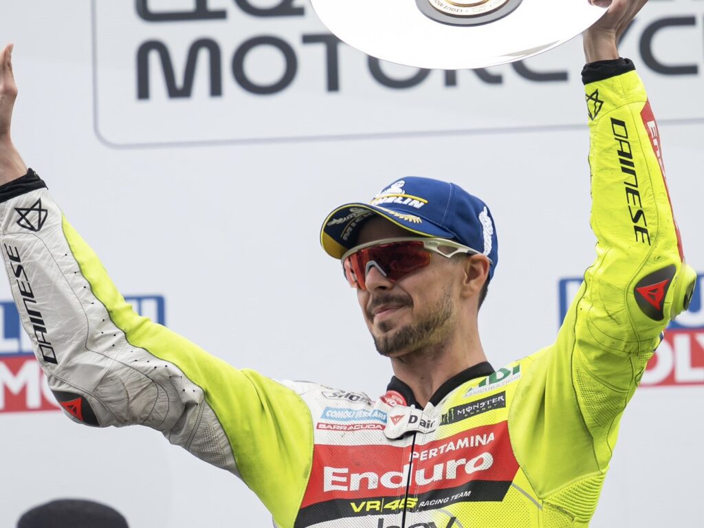 El italiano volvía al podio tras unas semanas algo irregulares. «Hemos visto que nuestra constancia con la moto no siempre ha sido la misma, desde Mugello hemos tenido varias oportunidades de ir al podio, pienso en Sachsenring o en Hungría, pero luego por varios motivos no sucedió. Por eso quiero mantener los pies en la tierra y seguir trabajando, veremos en los próximos circuitos».