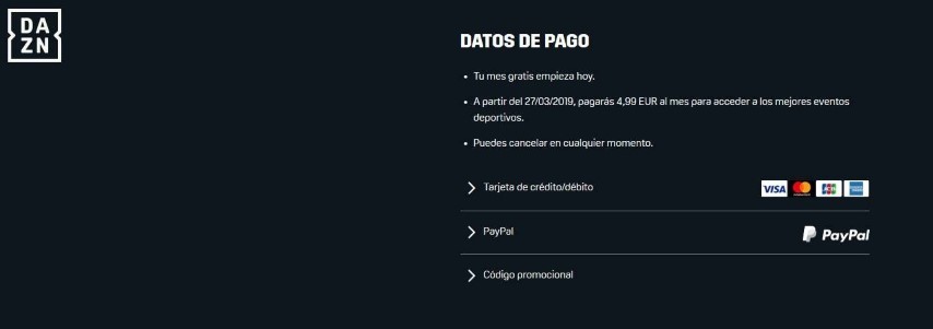Tras barajarse varios precios, la compañía finalmente ha decidido realizar una campaña agresiva de captación, dando el primer mes gratis de prueba así como un precio mensual de 4,99€. Si te gustan las motos, el dinero ya no es excusa para perdértelas. A diferencia como sí lo era con Movistar los años anteriores. Con Dazn no existe compromiso de permanencia ni tampoco estás obligado a contratar otros productos.