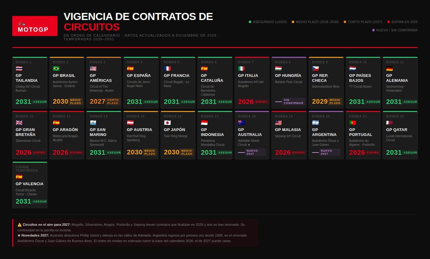 El calendario de MotoGP 2027 se empieza a formar con la renovación de contratos.