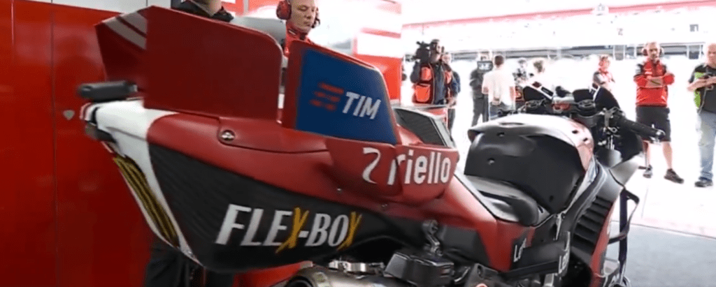 Los de Borgo Panigale fueron los pioneros en introducir novedades aerodinámicas en MotoGP, algo que ha ido evolucionando con el tiempo y que todos los equipos han intentado incorporar para hacer frente a la superioridad de las Ducati. De hecho, la última novedad de Gigi Dall’Igna son unas alas laterales traseras bajo el sillín y también en el colín que han introducido en la FP2 del GP de las Américas. Estas novedades llevan un soporte cerrado estilo bandeja que recuerda en parte al que ya usaba KTM, aunque de manera diferente, y todo en global parecido a las innovaciones pasadas de Aprilia.
