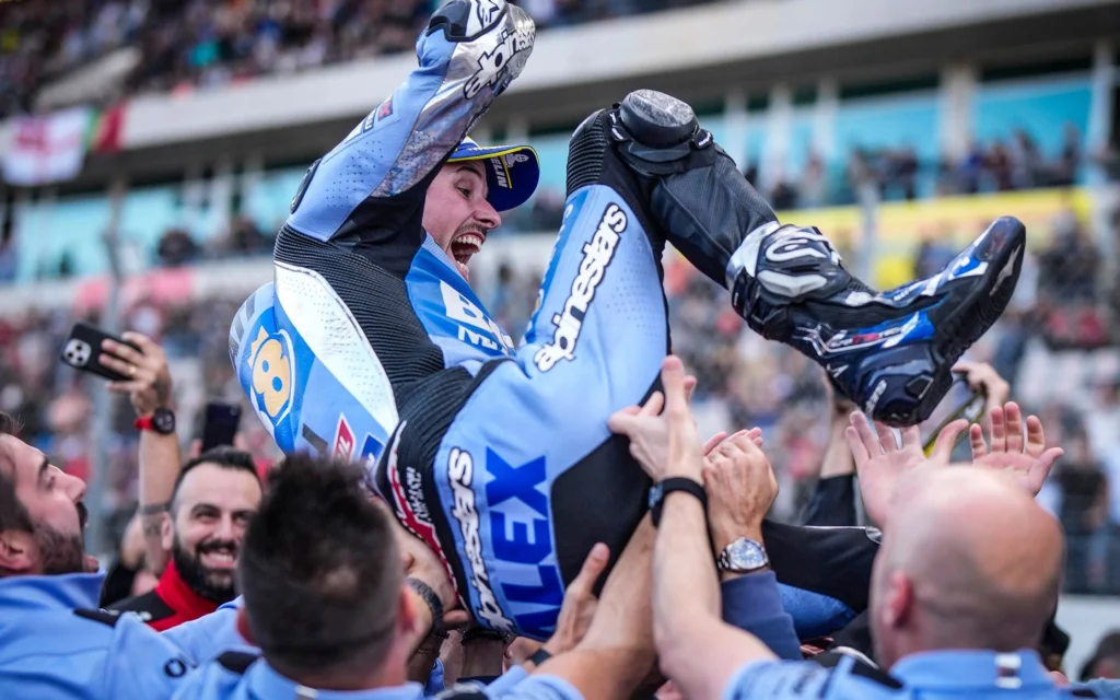 Tras una intensa pelea con Pedro Acosta, el piloto del Gresini Racing resumía así la emoción de la carrera corta. “Siempre digo que las batallas son bonitas cuando las ganas. Si no, te vas jodido. Es verdad que no tenía el feeling y tenía bastantes problemas para parar la moto, y ahí es donde él me atacaba de vuelta. No me encontraba muy bien encima de la moto. No tenía el feeling que tuve el viernes o ayer por la mañana. Hay que mejorar de cara al domingo. Pero creo que la batalla ha sido bonita, y cuando te lo llevas a casa, aún más.”