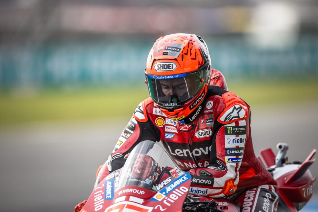 Marc Márquez firmó el segundo puesto en la Sprint Race de Buriram el pasado sábado, tras una polémica sanción por un incidente con Pedro Acosta en las últimas vueltas de la carrera. Esto le obligó a ceder una posición al de KTM, cruzando la meta en segundo lugar. El domingo, el de Ducati se vio relegado al grupo perseguidor durante los primeros compases de la carrera; y cuando comenzó su remontada, una salida de pista provocó que su neumático trasero explotase. Aún así, el piloto se queda con lo bueno, según nos trasladaba nuestro colaborador Manuel Pecino desde el paddock tailandés.