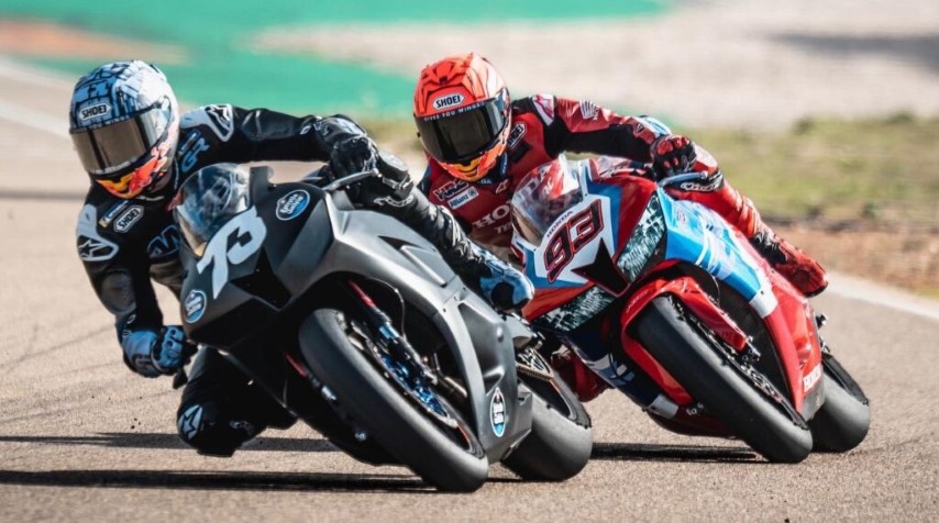 Los hermanos Márquez, Álex y Marc, entrenan en Motorland Aragón antes del inicio de pretemporada. Álex aún espera su Ducati pero entrena con su CBR 600 RR Honda.