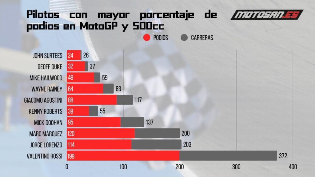 Estos han sido los pilotos que más porcentaje de podios han logrado en su etapa en 500cc y MotoGP.