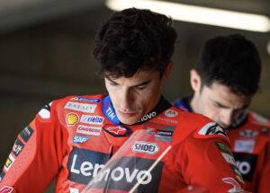 «Es verdad que para coger a Bezzechi he cogido riesgo. No te voy a engañar, he cogido ese extra de riesgo», se sinceraba el de Cervera. «Girando en 29 bajo medio estaba cómodo. 28 ya eran dos, tres frenadas, un poquito de riesgo que se iba cerrando, pero viene de serie. Luego falta tunearlo un poquito, falta tocar algunos ‘clicks’ de vez en cuando para gestionarlo. Hoy ha salido bien, estamos riendo, pero toca también de vez en cuando respirar», fue sincero Márquez.