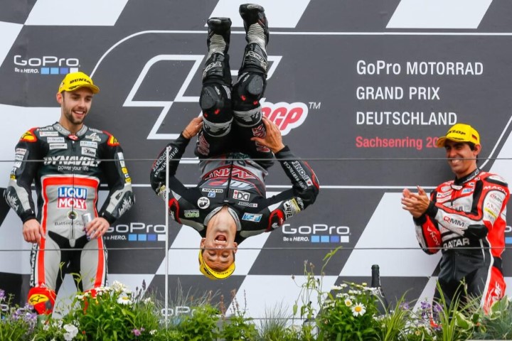 «Hice mi primera voltereta hacia atrás en Mugello en 2007. Esa fue mi primera victoria en la Rookies Cup«, mencionaba Johann. «Hice esa voltereta hacia atrás en aquel momento. La pista estaba casi vacía porque la carrera era un sábado por la tarde y estaba lloviendo. Pero recuerdo haber visto una cámara de televisión y en ese momento tomé la decisión de dar un salto mortal. Eso fue el comienzo«, recordaba el campeón de Moto2.
