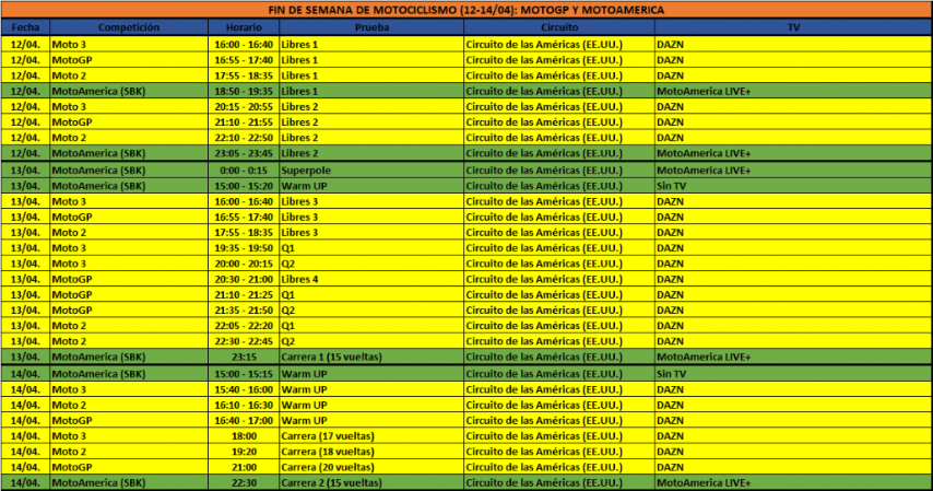 Llega otro fin de semana cargado de motociclismo que hará disfrutar a los aficionados. Por un lado, el Campeonato del Mundo de MotoGP visitará el Circuito de las Américas, en Estados Unidos, para su tercer Gran Premio del año. Por otro lado, el Mundial de Superbikes afrontará una ronda ‘back to back’ en la mítica Catedral, Assen, después de la disputada en MotorLand Aragón.