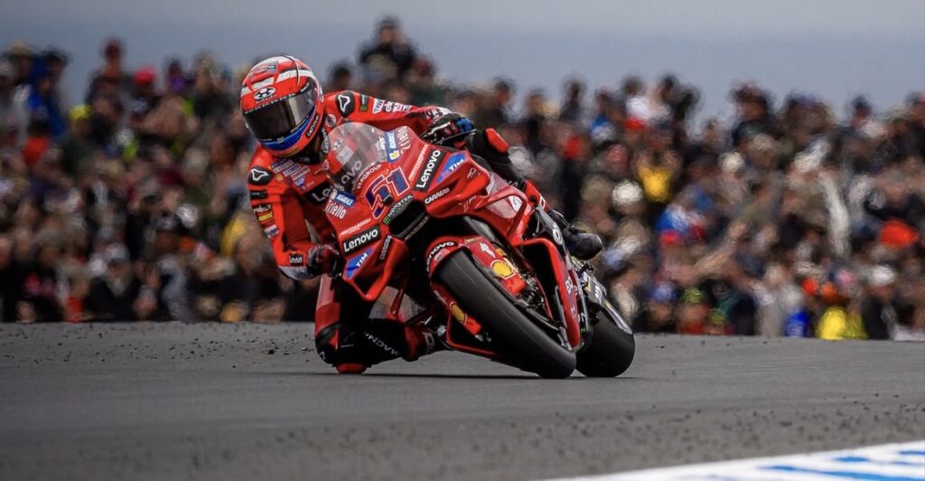 Detalla cómo aprovechan cada oportunidad de prueba y desarrollo en MotoGP. «Al final, aprovechamos también el hecho de probar en un circuito completamente diferente al que estamos acostumbrados. Y porque Ducati no tiene concesiones, así que solo puedo rodar en ciertos circuitos; solo tengo algunas oportunidades. Hicimos nuestro trabajo, intentando hacer dos carreras constantes y mantener mi ritmo. Pero probamos cosas, y veremos de continuar el trabajo aquí, porque es importante, sobre todo para entender todo lo que se puede hacer para Pecco y la moto del próximo año.»