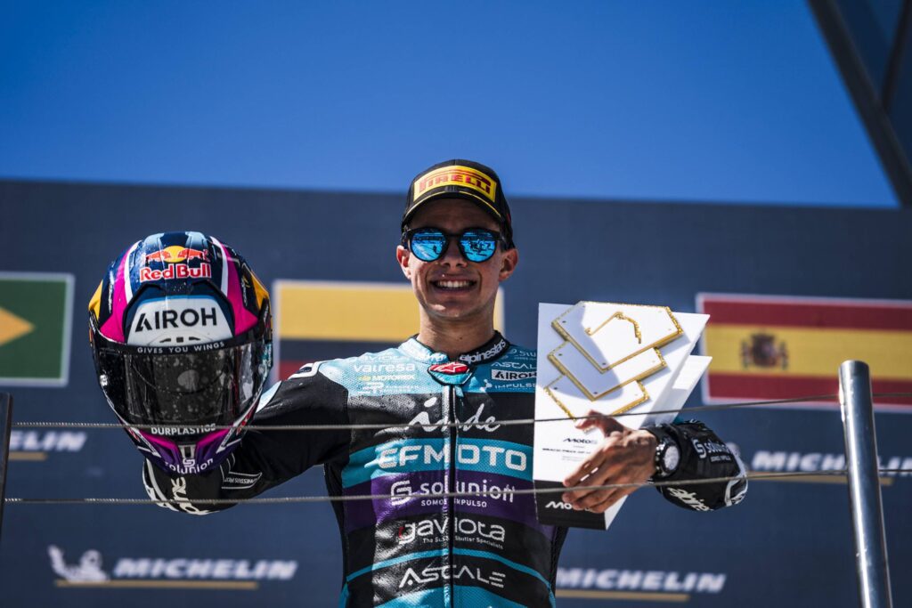 Con esta declaración, el español pone el foco en dos fenómenos prematuros. Por un lado, David Alonso, el colombiano-español que en 2024 arrasó en Moto3 con un registro histórico de 14 victorias y 421 puntos, incluyendo una raya de siete triunfos consecutivos. Ahora en Moto2, donde ya ha logrado su primera victoria, Alonso destaca por una virtud propia de un veterano: una gestión de neumáticos exquisita que le hace crecer en las últimas vueltas.