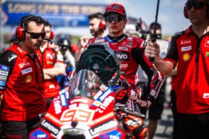 El balance de la jornada. «Me he acordado de Requena y Ángel Nieto diciendo ‘qué bonito día para practicar motociclismo’ tú. Madre mía, qué día para volver. Pero bueno, bien. Desde diciembre no rodaba en agua y coger el ritmo otra vez no ha sido fácil. Me he encontrado así con el neumático blando por la falta de velocidad entrando en las curvas, he hecho overheat muy rápido. El último run iba detrás de Pecco [Bagnaia], lo he cogido un poquito y pensaba que él tiraría y poder hacer una vuelta rápida. Pero lo he cogido muy deprisa y no hemos podido mejorar. Pero bueno, aún así a medio segundo del paso a la Q2. En estas condiciones tan complicadas no está tan mal y bueno, veremos mañana a ver si la Q1 no sufro mucho con todas las bestias que hay».