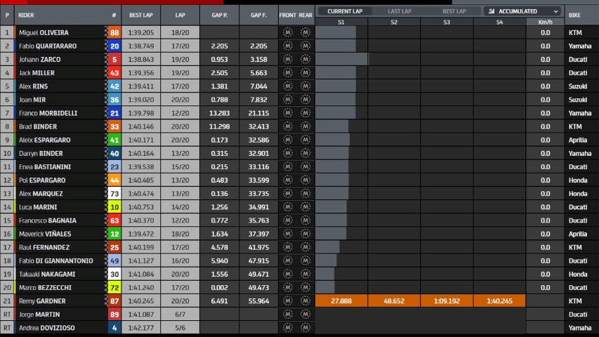 La carrera fue de lo más inesperado del fin de semana. Desde la dura caída de Marc Márquez en el Warm-Up que le impidió correr, hasta la propio victoria de Oliveira. Durante todo el Gran Premio se podía intuir qué iba a pasar, pero nadie apostó por una carrera 100% en mojado. Entre todo este caos, Oliveira, Jack Miller y Johann Zarco se frotaban las manos. Los especialistas en condiciones de lluvia adquirían una importancia superlativa. Tres de los mencionados lo aprovecharon a la perfección. Luego sería Quartararo, que cada vez se siente más cómodo en estas condiciones, quien daría un puñetazo sobre la mesa para resarcirse del negativo resultado conseguido en Qatar. MotoGP siempre sorprende a todos, y en Mandalika no ha habido excepción alguna.
