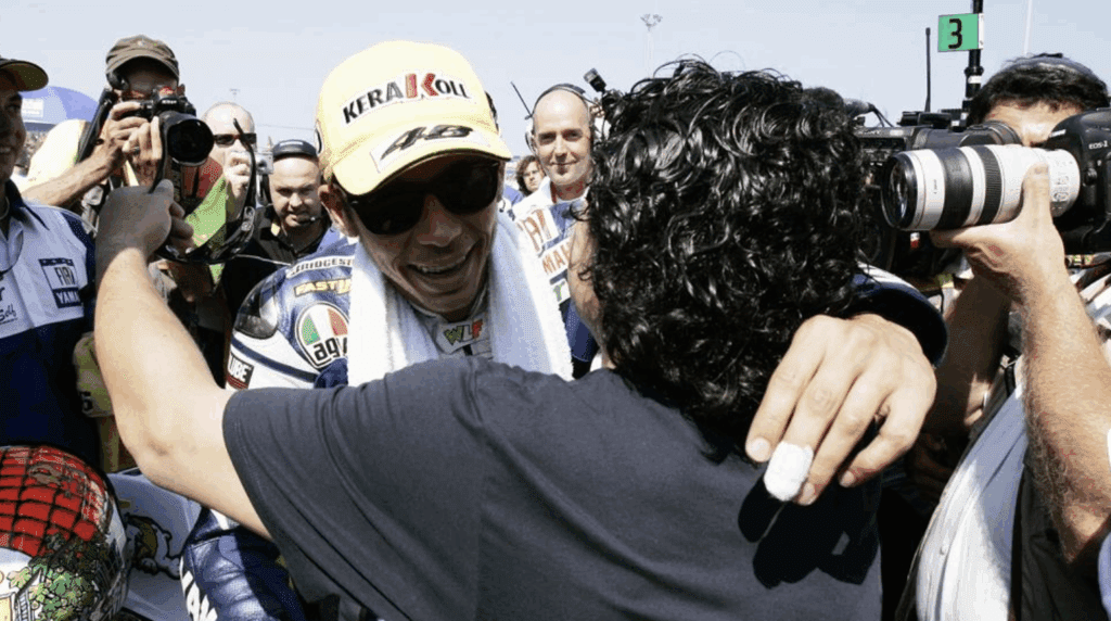 Rossi también recordó momentos históricos de su carrera, como su encuentro con Diego Maradona en Misano 2008, donde incluso llegó a besar el pie del astro argentino: “Incluso lo besó, sí. Yo le besé el pie izquierdo. Misano, 2008. ¡En cierto momento, Maradona estaba allí! Fue emocionante, y por suerte gané, y después vino al box, armamos un poco de ruido, él también era un fiestero…”.
