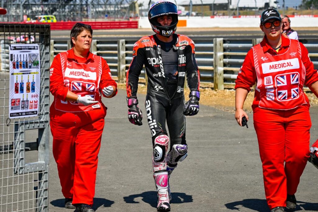 Aleix Espargaró lo tenía todo para luchar por la victoria el pasado domingo en Silverstone. El piloto de Aprilia, junto a su compañero de equipo Maverick Viñales, había demostrado un gran ritmo durante las dos primeras jornadas del Gran Premio de Gran Bretaña. Sin embargo, el de Granollers sufrió un increíble ‘highside’ durante la FP4 de MotoGP.