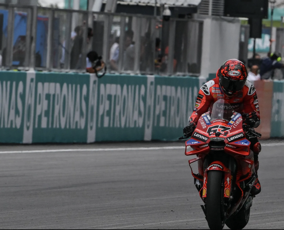Pocas después, Piero Taramasso, responsable de Michelin, confirmó a Sky el motivo de la retirada: “Encontramos un pinchazo en el centro del neumático trasero. Había un agujero, probablemente causado por un trozo de carbono”. El problema, tan inusual como inoportuno, puso fin a las opciones de Bagnaia en una carrera donde todo apuntaba a un nuevo duelo directo con Álex Márquez y Pedro Acosta.