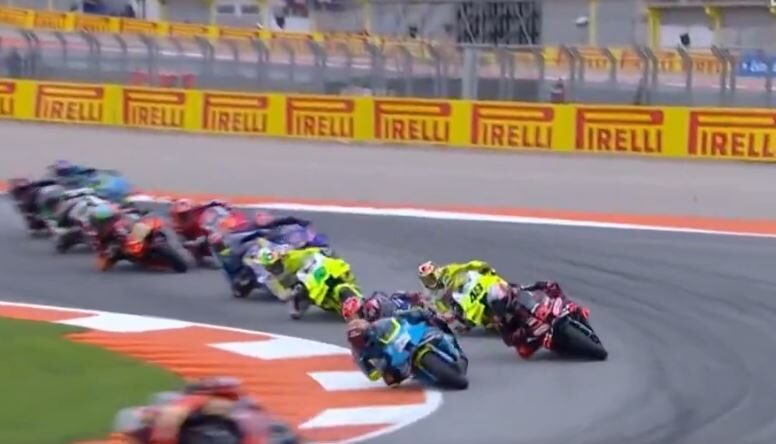 La decepción de hoy la encontramos en Marco Bezzecchi al terminar en quinta posición en la carrera al sprint del Gran Premio de Valencia tras lograr una pole de récord. El número 72 de Aprilia parecía el principal favorito junto con Alex Márquez, pero una mala salida le ha condenado a situarse sexto por detrás de Quartararo. De hecho, ha dado la sensación de aparentar tener algún problema, puesto que en las aceleraciones se quedaba atrás respecto a los pilotos que tenía al lado.