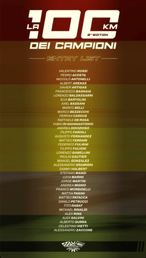 Son muchos los Campeones que participarán en los 100 kilómetros, tal y como dice el propio evento. Y precisamente los Campeones de MotoGP y Moto2, ahí estarán. Pecco Bagnaia y Augusto Fernández, dos pilotos de MotoGP, serán los principales candidatos para llevarse la victoria. El italiano tiene más experiencia en este contexto, así como una retahíla de otros compatriotas que han pasado por la Academia de Valentino Rossi.