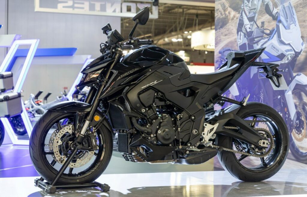 En cuanto a la parte ciclo, Zontes no ha escatimado en componentes de marcas reconocidas para garantizar un comportamiento dinámico de confianza. El sistema de frenado queda en manos de especialistas, con pinzas radiales Nissin de cuatro pistones y una bomba radial que trabaja junto a un avanzado sistema de ABS en curva (Cornering ABS). Por su parte, Marzocchi firma las suspensiones, completamente ajustables para que cada piloto pueda adaptar el comportamiento de la moto a su estilo de conducción o al estado del asfalto.