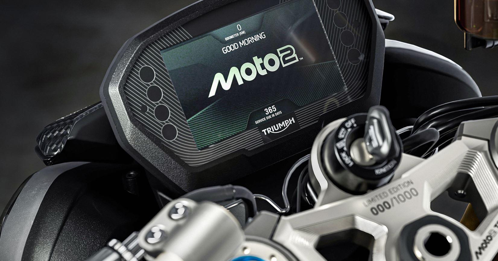 Equipadas con un completo paquete de ayudas electrónicas orientadas a ofrecer mayor confianza y control, las nuevas Street Triple 765 RX y Moto2 Edition incorporan una pantalla TFT a color de 5 pulgadas con una interfaz intuitiva y de fácil lectura. La Moto2 Edition añade, además, un mensaje de inicio personalizado con el logotipo Moto2, un detalle que refuerza su vínculo con la competición y acompaña a la tija mecanizada y numerada de cada unidad.