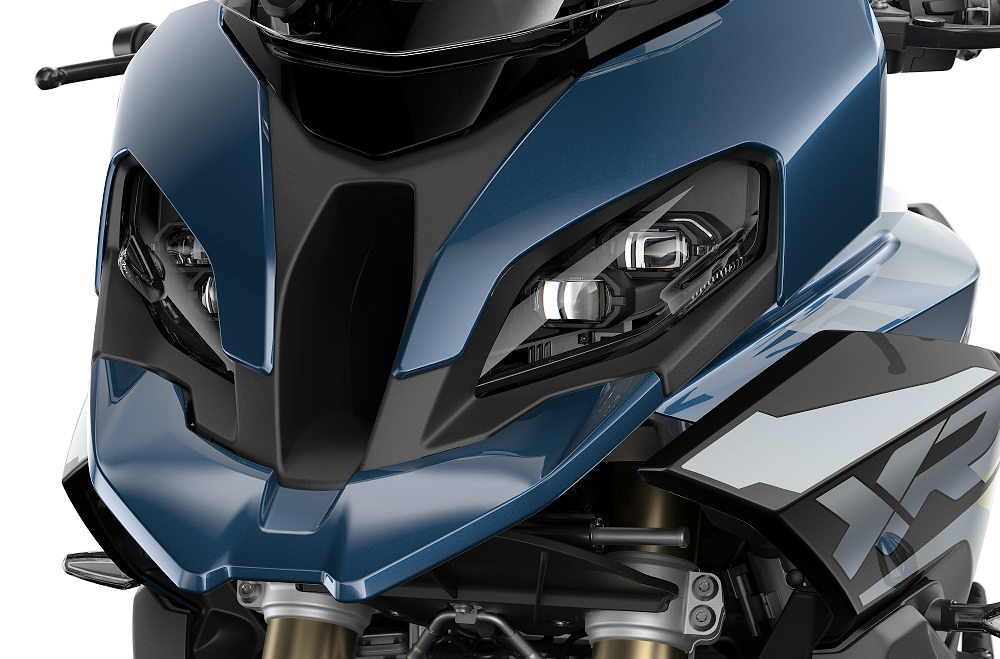 Su estética es inconfundible: líneas afiladas, faros LED penetrantes y una silueta que evoca velocidad incluso detenida, pero sin sacrificar la ergonomía; la postura de conducción es equilibrada, ideal para largas jornadas en carretera sin fatigar al piloto, un equilibrio perfecto entre una moto deportiva y una gran rutera. El chasis, ligero pero rígido, y la suspensión electrónica adaptativa (Dynamic ESA, opcional) aseguran una conexión sublime con el asfalto, absorbiendo irregularidades y ofreciendo una estabilidad soberbia a alta velocidad.