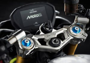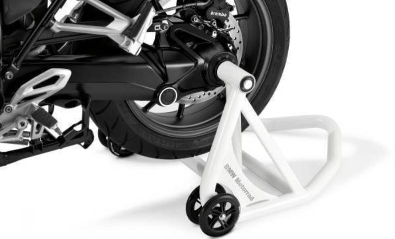 La rueda trasera de la motocicleta se puede levantar fácilmente usando el soporte auxiliar Sport. El caballete se coloca debajo de los soportes de montaje disponibles adicionalmente y, gracias a los puntos de fijación ajustables, ofrece una posición de pie segura y óptima para todos los trabajos de mantenimiento y durante las vacaciones de invierno. Es extremadamente estable y tiene un mayor grosor de material que los soportes auxiliares convencionales. Las ruedas dobles facilitan el levantamiento y son especialmente duraderas.